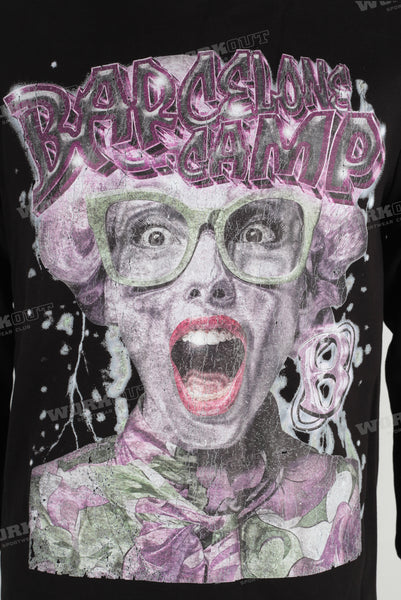 Black digital print raw hem long sleeve t shirt