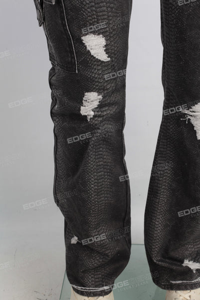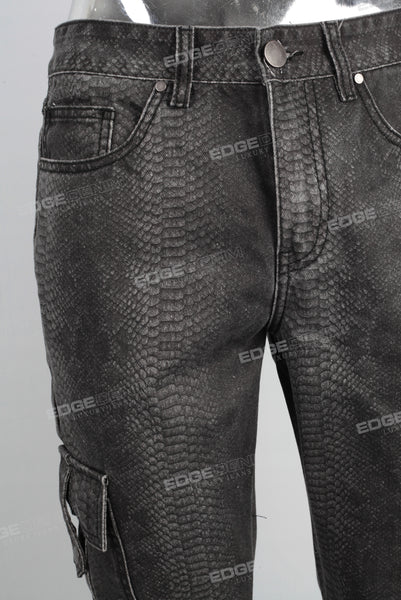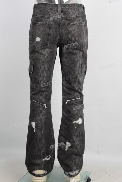 Digital print damaged cargo jeans