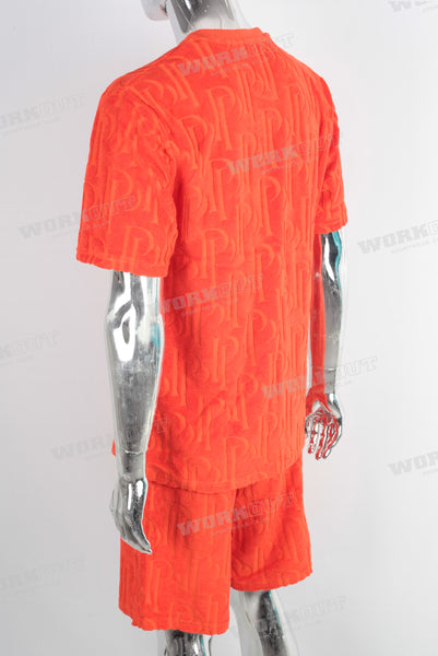 Orange oversize 3d jacquard t shirt and shorts set