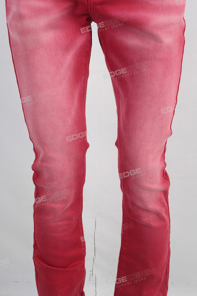 Red acid washed skinny jeans